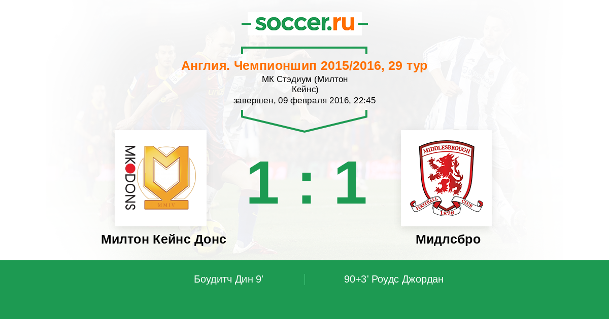 Протокол матча Милтон Кейнс Донс против Мидлсбро