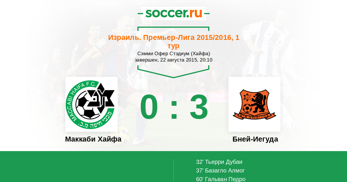 Протокол матча Маккаби Хайфа против Бней-Иегуда