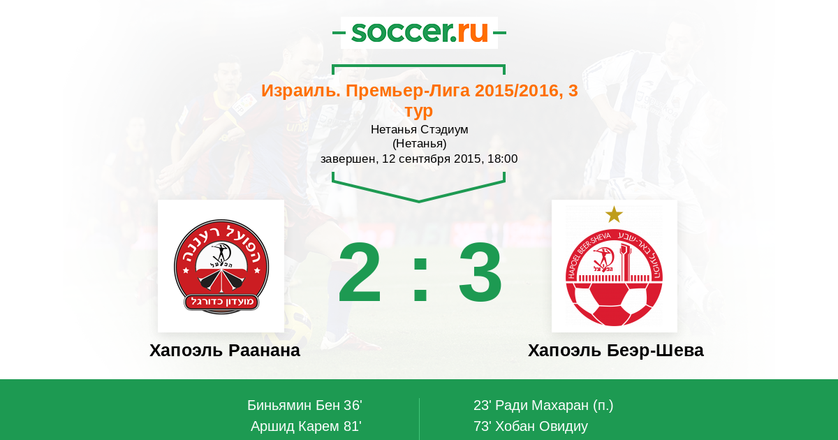 Протокол матча Хапоэль Раанана против Хапоэль Беэр-Шева