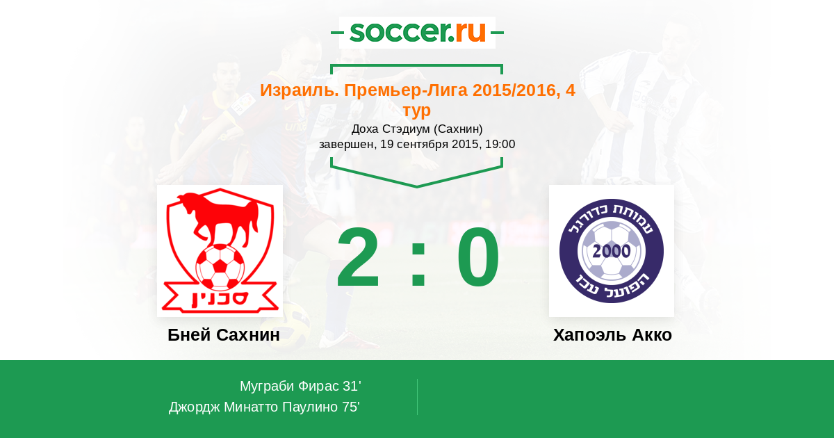 Протокол матча Бней Сахнин против Хапоэль Акко