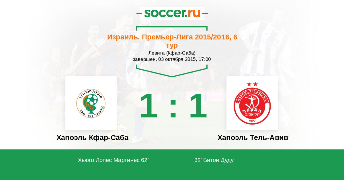 Протокол матча Хапоэль Кфар-Саба против Хапоэль Тель-Авив