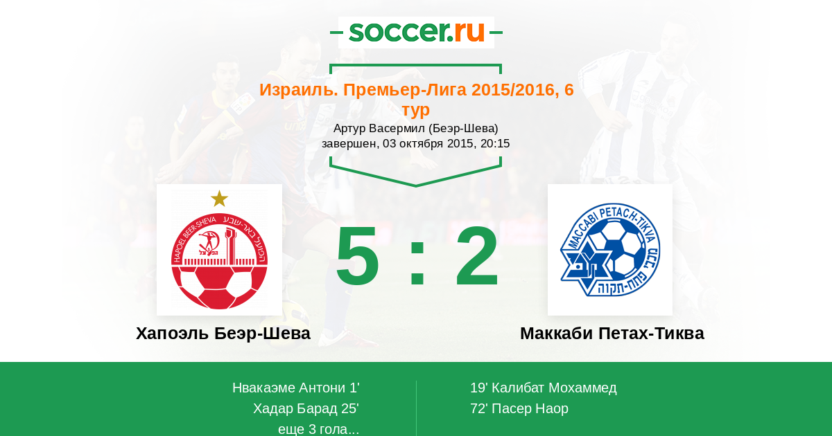 Протокол матча Хапоэль Беэр-Шева против Маккаби Петах-Тиква