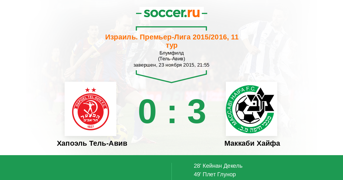 Протокол матча Хапоэль Тель-Авив против Маккаби Хайфа