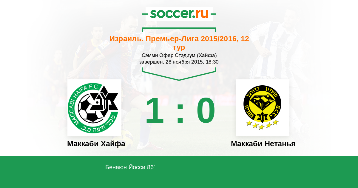 Протокол матча Маккаби Хайфа против Маккаби Нетанья