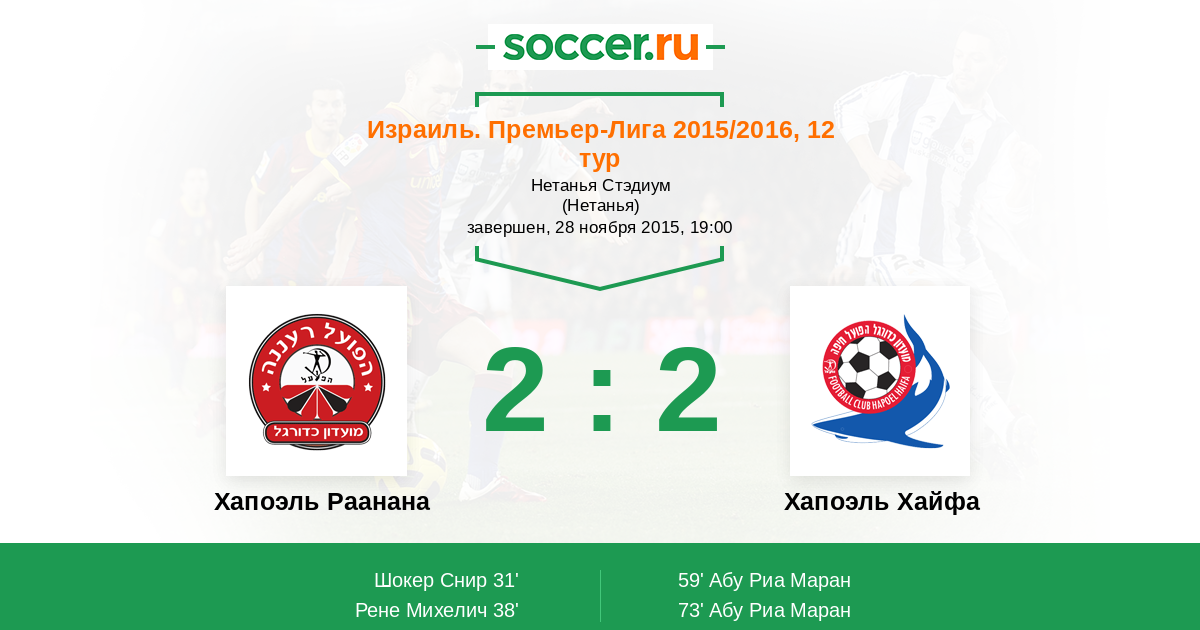 Протокол матча Хапоэль Раанана против Хапоэль Хайфа