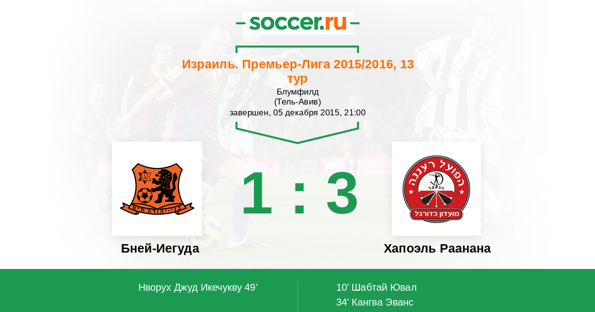 Протокол матча Бней-Иегуда против Хапоэль Раанана