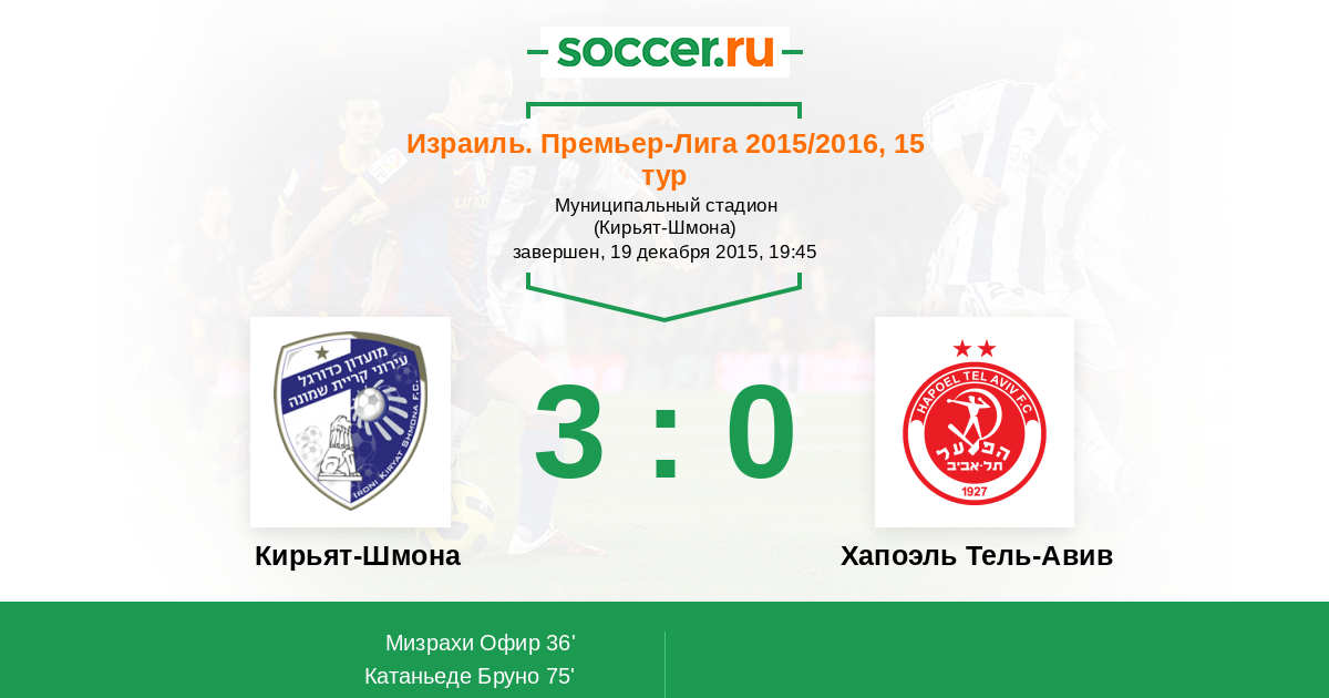 Протокол матча Кирьят-Шмона против Хапоэль Тель-Авив