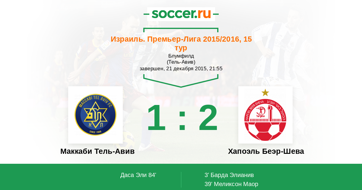Протокол матча Маккаби Тель-Авив против Хапоэль Беэр-Шева