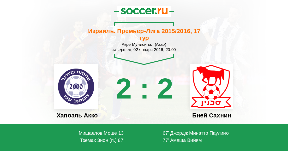 Протокол матча Хапоэль Акко против Бней Сахнин