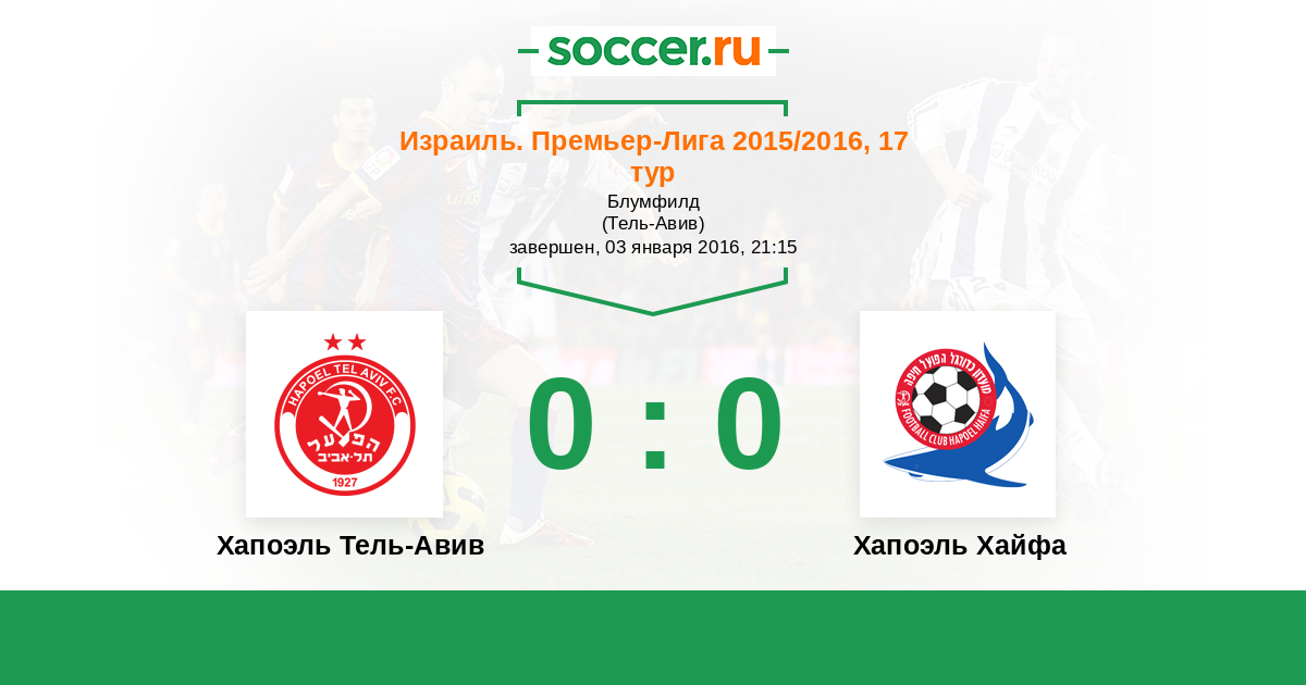 Израиль. Премьер-Лига 03.01.2015 Хапоэль Хайфа Логотип футбольный клуб Хапоэль Хайфа 1:1 Логотип футбольный клуб Хапоэль Тель-Авив Хапоэль Тель-Авив