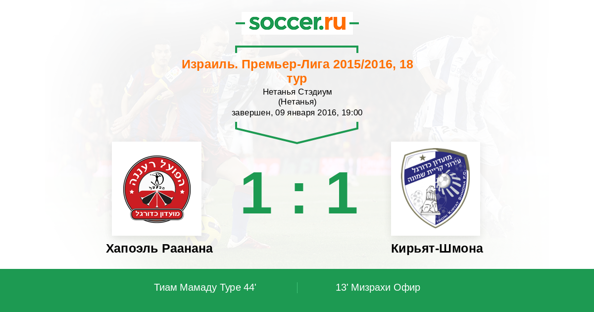 Протокол матча Хапоэль Раанана против Кирьят-Шмона