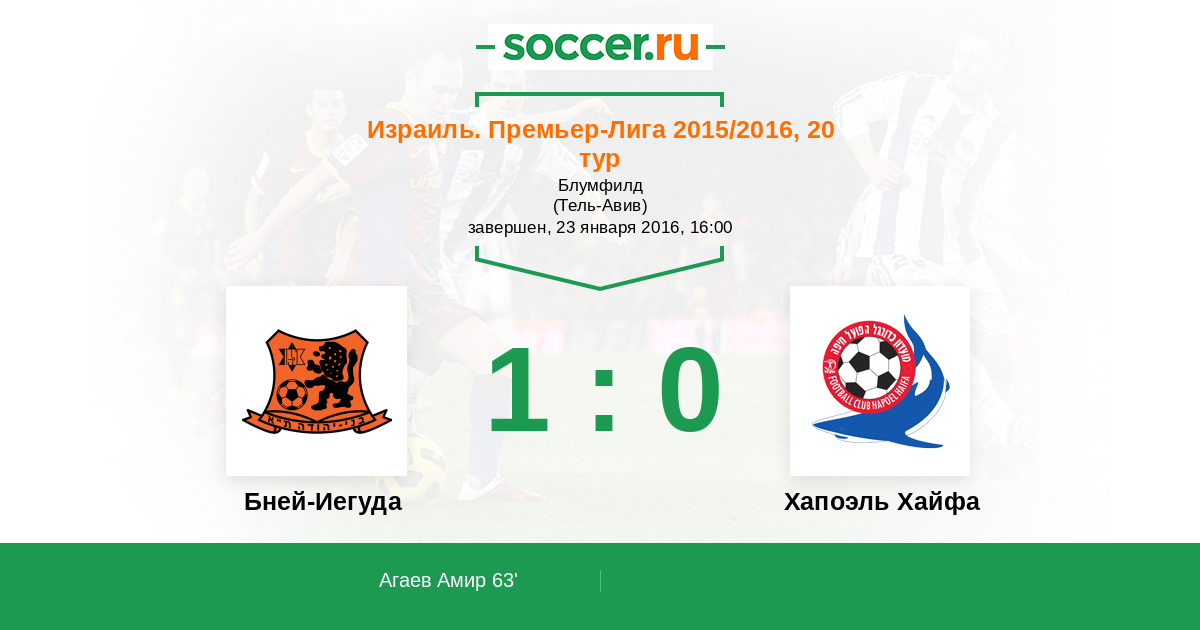 Протокол матча Бней-Иегуда против Хапоэль Хайфа