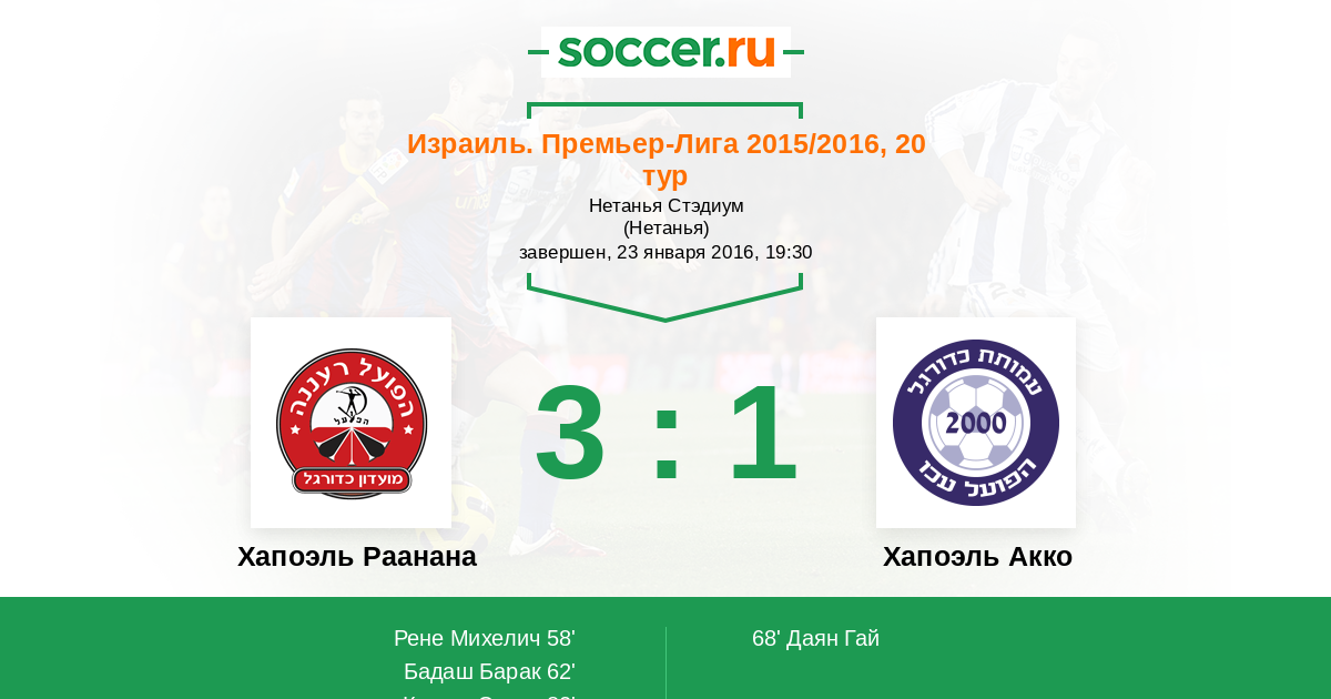 Протокол матча Хапоэль Раанана против Хапоэль Акко