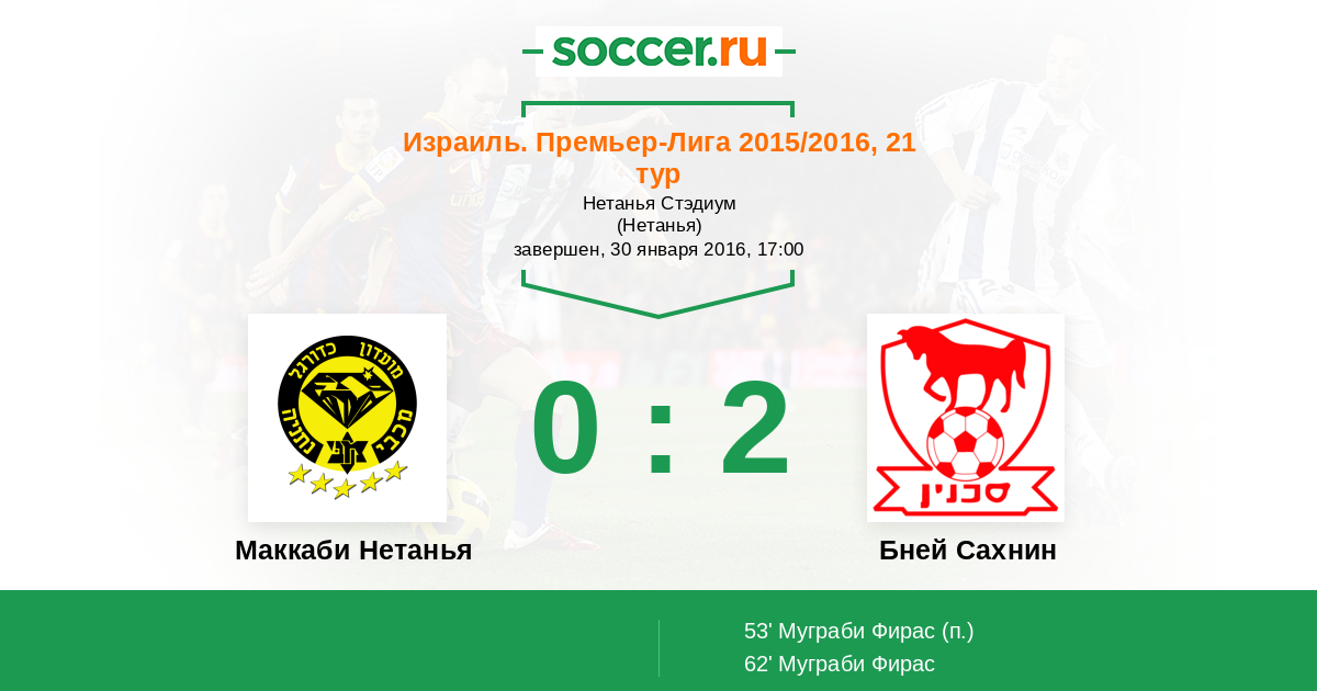 Протокол матча Маккаби Нетанья против Бней Сахнин