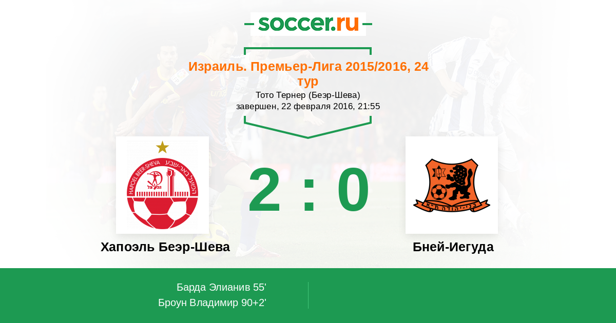 Протокол матча Хапоэль Беэр-Шева против Бней-Иегуда