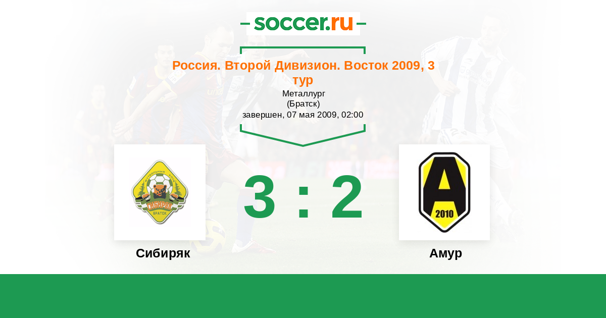 Россия. 2-й дивизион. Восток 23.06.2009 Амур Логотип футбольный клуб Амур  (Благовещенск) 1:4 Логотип футбольный клуб Сибиряк (Братск) Сибиряк