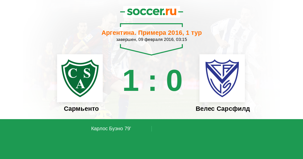 Протокол матча Сармьенто против Велес Сарсфилд