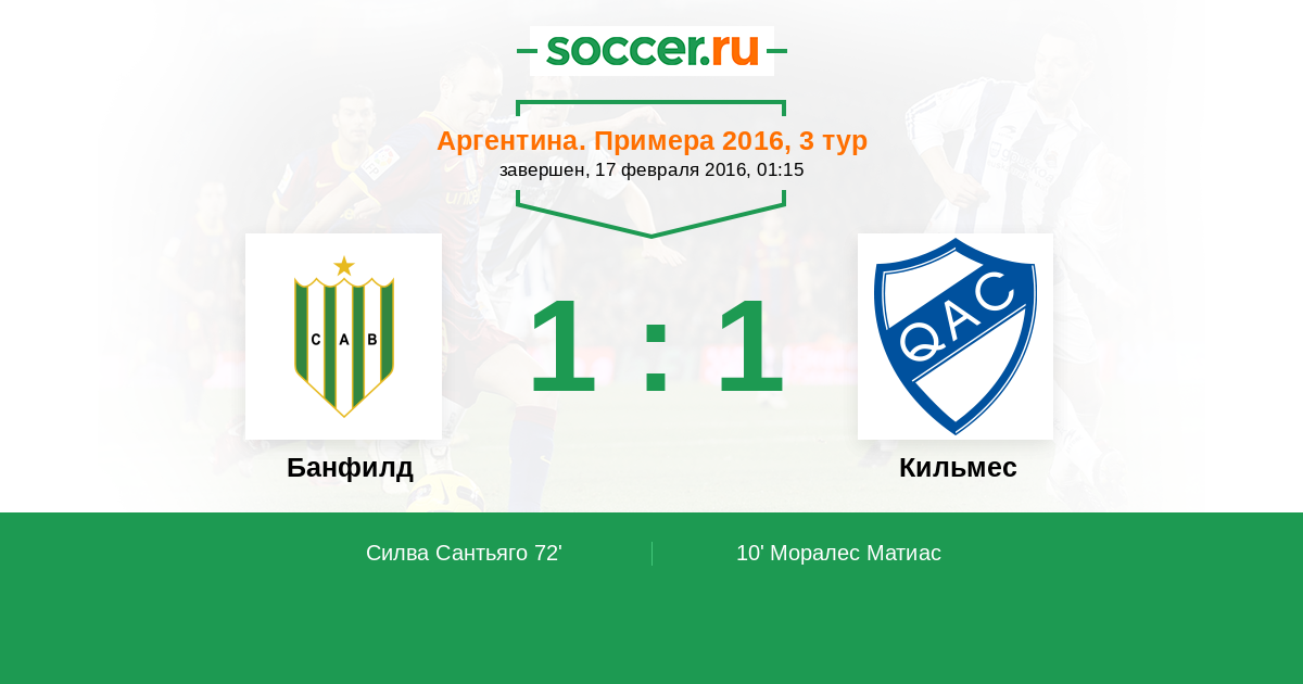 10' (0:1) Моралес Матиас (29) (Арсе Дамиан (11))
