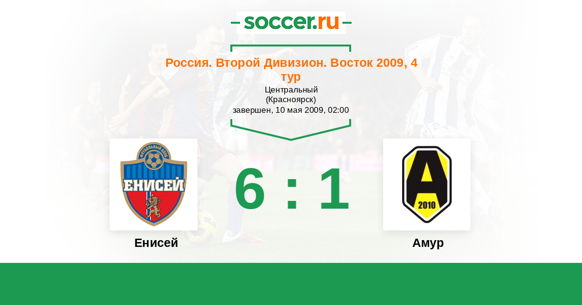 Россия. 2-й дивизион. Восток 26.06.2009 Амур Логотип футбольный клуб Амур  (Благовещенск) 1:2 Логотип футбольный клуб Енисей (Красноярск) Енисей