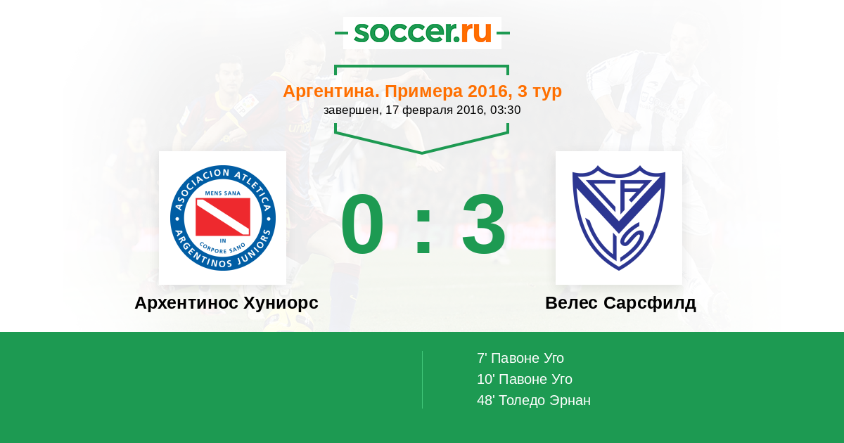 Протокол матча Архентинос Хуниорс против Велес Сарсфилд