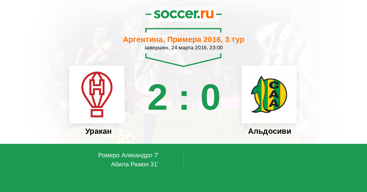 Протокол матча Уракан против Альдосиви