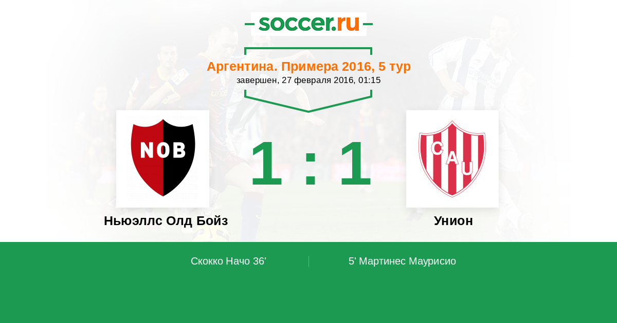 Протокол матча Ньюэллс Олд Бойз против Унион