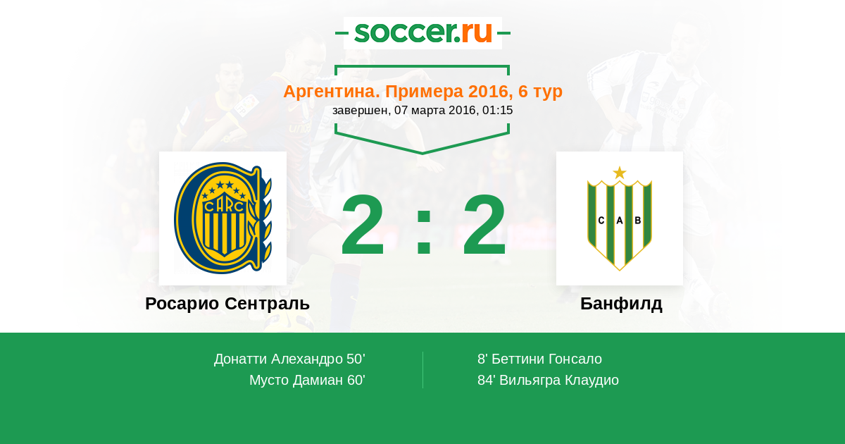 Протокол матча Росарио Сентраль против Банфилд