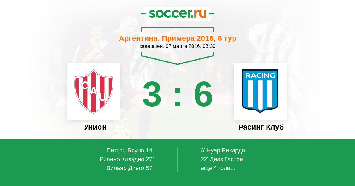 Протокол матча Унион против Расинг Клуб