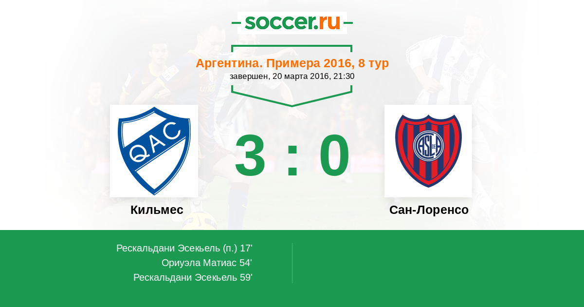 Протокол матча Кильмес против Сан-Лоренсо