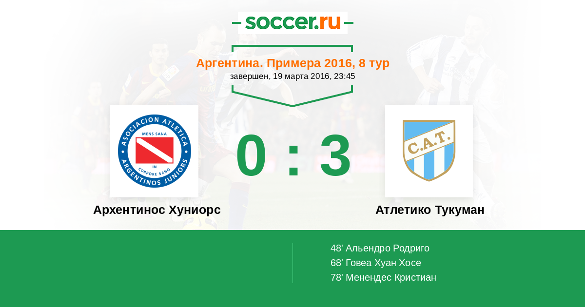 Протокол матча Архентинос Хуниорс против Атлетико Тукуман