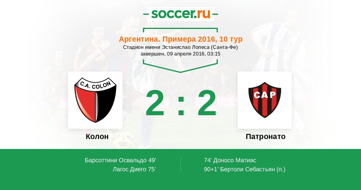 75' (2:1) Лагос Диего (Спердути Маурисио (18))