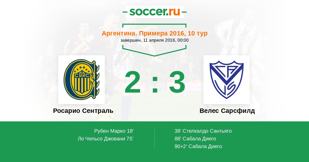 Протокол матча Росарио Сентраль против Велес Сарсфилд