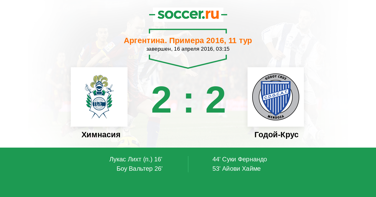 Протокол матча Химнасия против Годой-Крус