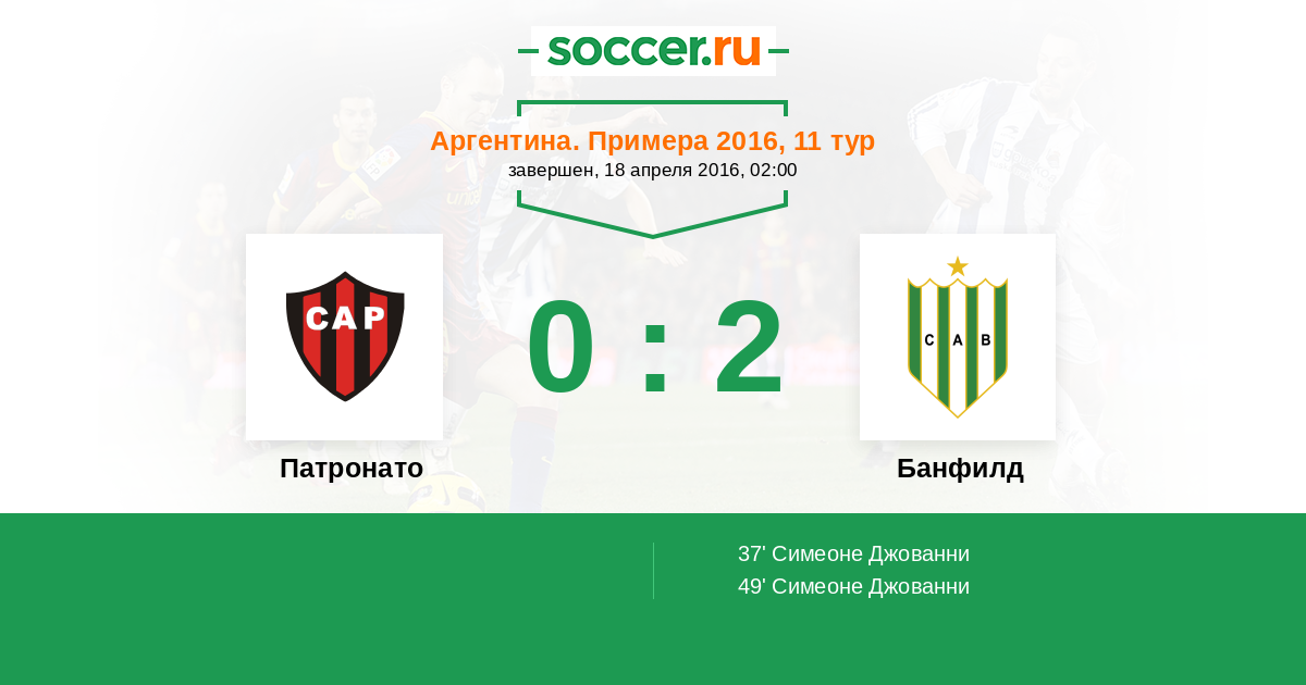 49' (0:2) Симеоне Джованни (11) (Сармьенто Брайан (22))