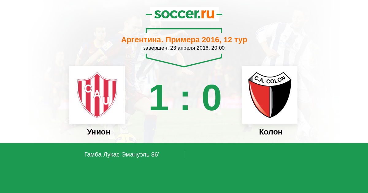 Протокол матча Унион против Колон