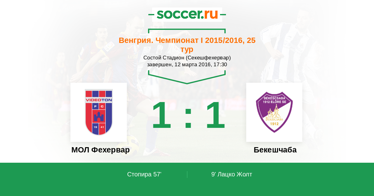 Протокол матча Видеотон против Бекешчаба