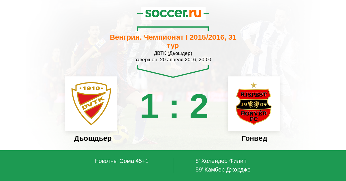 Протокол матча Дьошдьер против Гонвед