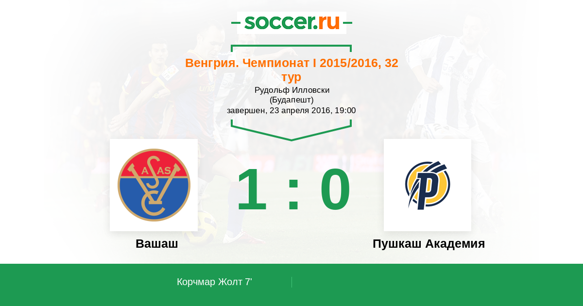 Протокол матча Вашаш против Пушкаш Академия