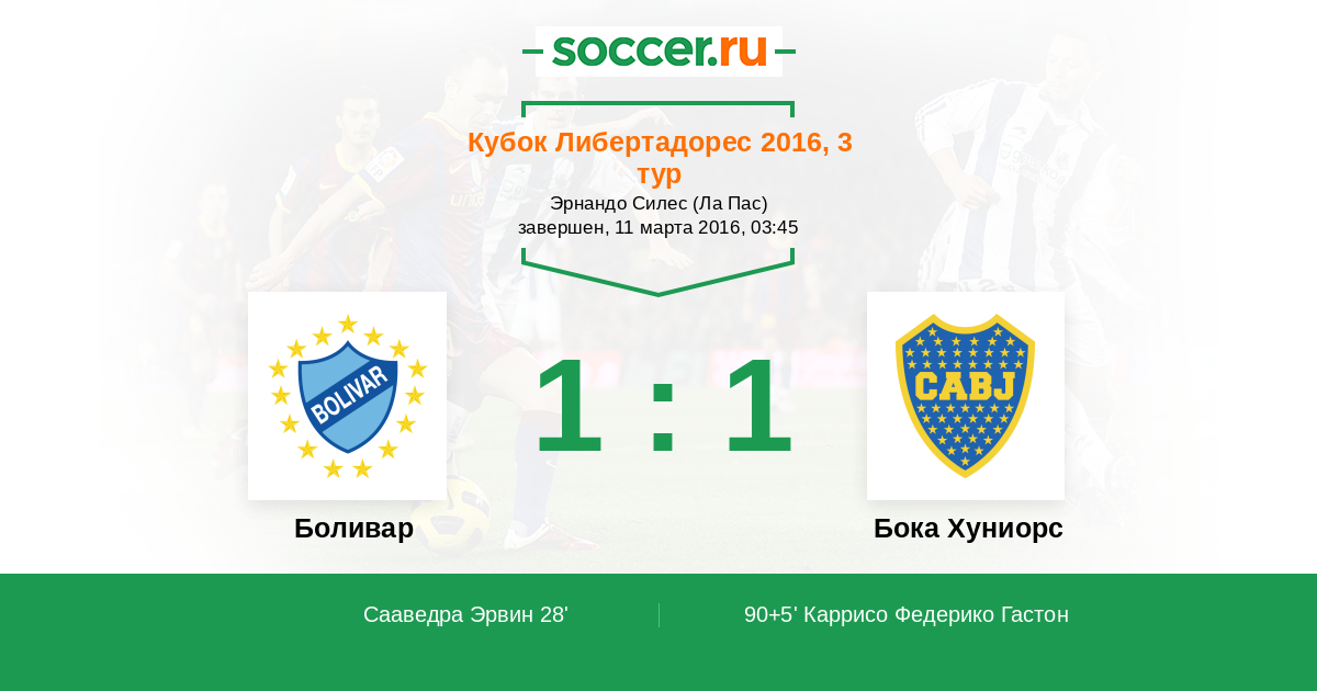 Протокол матча Боливар против Бока Хуниорс