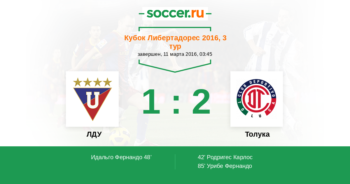 85' (1:2) Урибе Фернандо (20) (Куэва Кристиан (13))