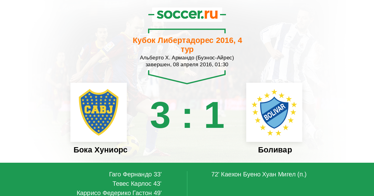 Протокол матча Бока Хуниорс против Боливар