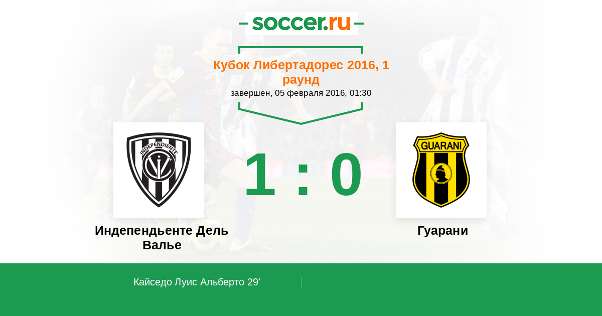 Протокол матча Индепендьенте Дель Валье против Гуарани