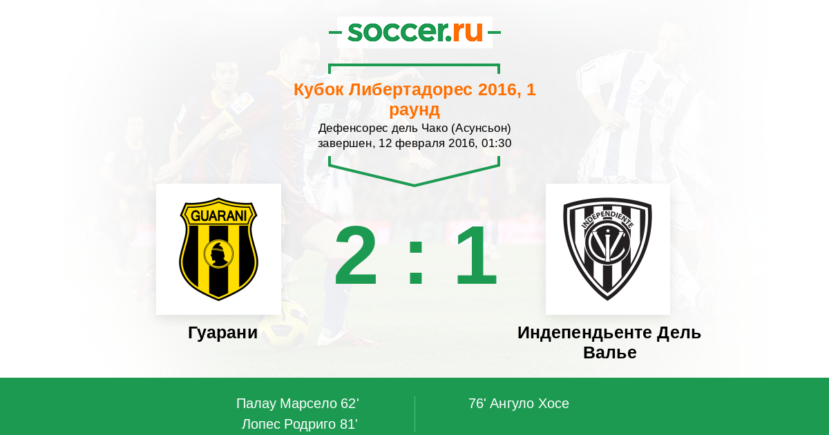 Протокол матча Гуарани против Индепендьенте Дель Валье