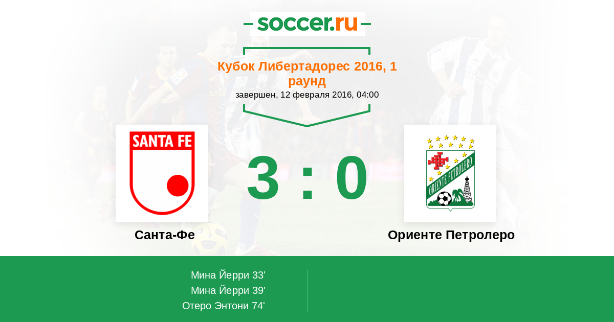 Протокол матча Санта-Фе против Ориенте Петролеро