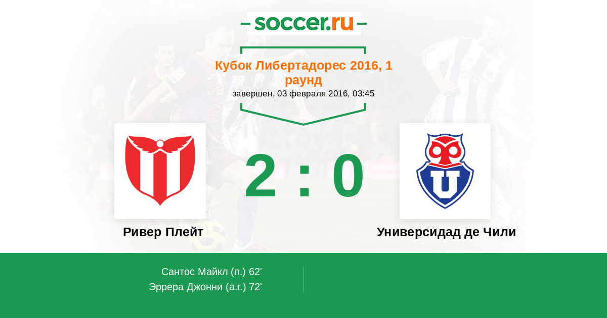 Протокол матча Ривер Плейт против Универсидад де Чили