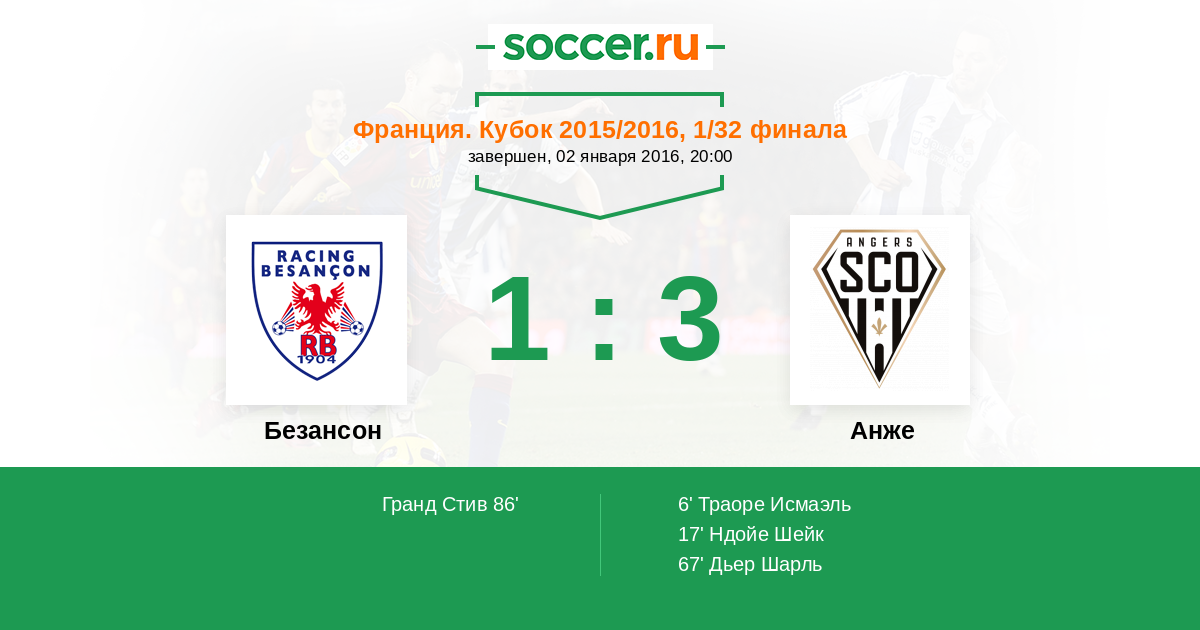 Протокол матча Безансон против Анже