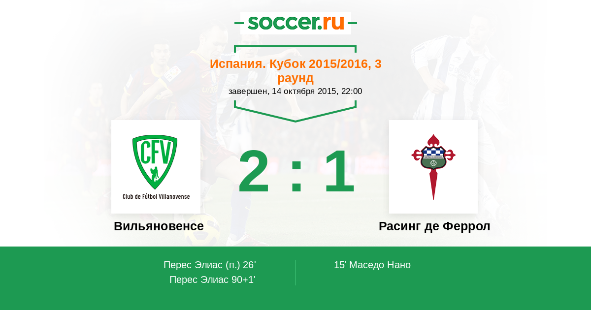Протокол матча Вильяновенсе против Расинг де Феррол