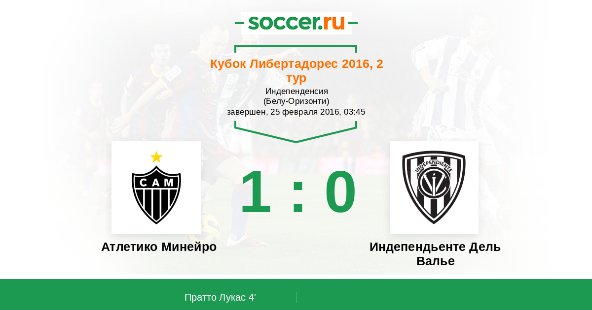 Протокол матча Атлетико Минейро против Индепендьенте Дель Валье