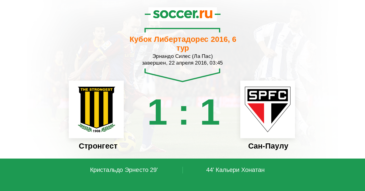 Протокол матча Стронгест против Сан-Паулу