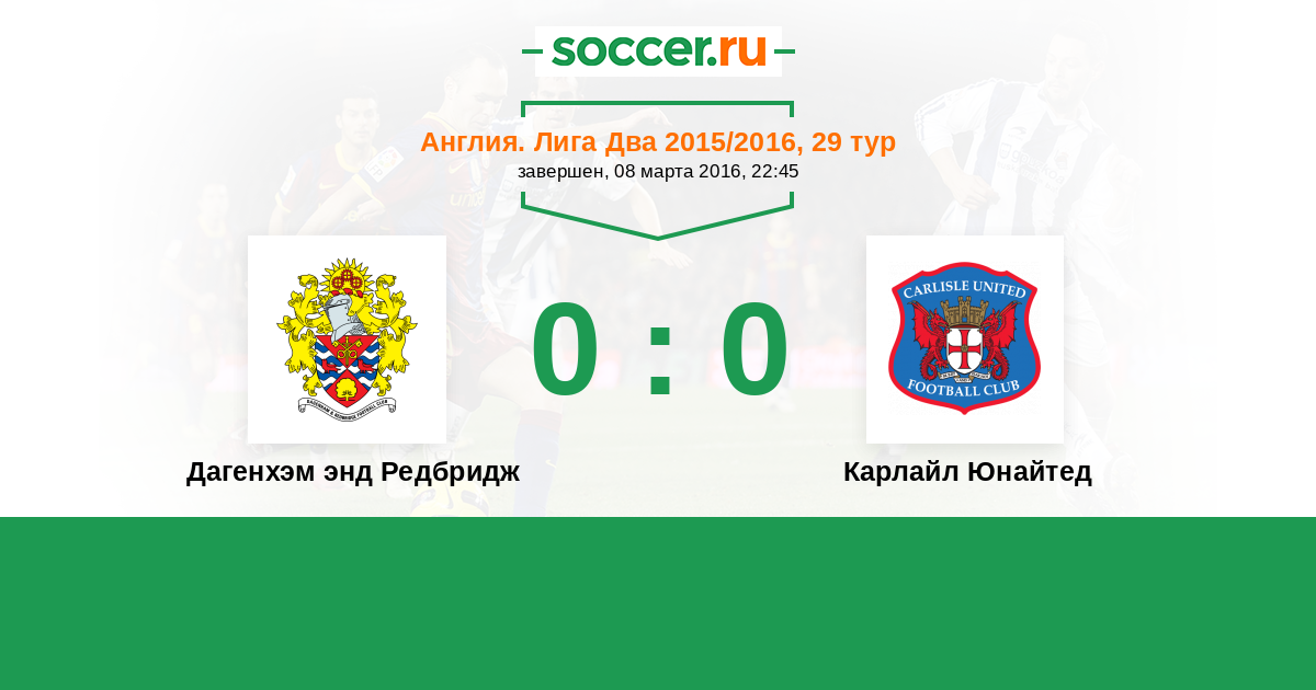 Протокол матча Дагенхэм энд Редбридж против Карлайл Юнайтед
